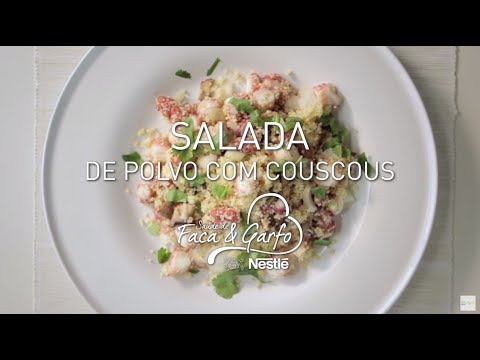 Prepara o cuscuz seguindo as instruções da embalagem, usando a água da cozedura do polvo. Solta os grãos com um garfo e reserva.