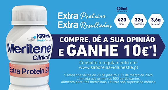 - 1. Adquirir 1 (uma) embalagem de Meritene® Clinical Extra Protein (formato composto por 4 (quatro) garrafas) no período de 20 de janeiro a 31 de março de 2026.